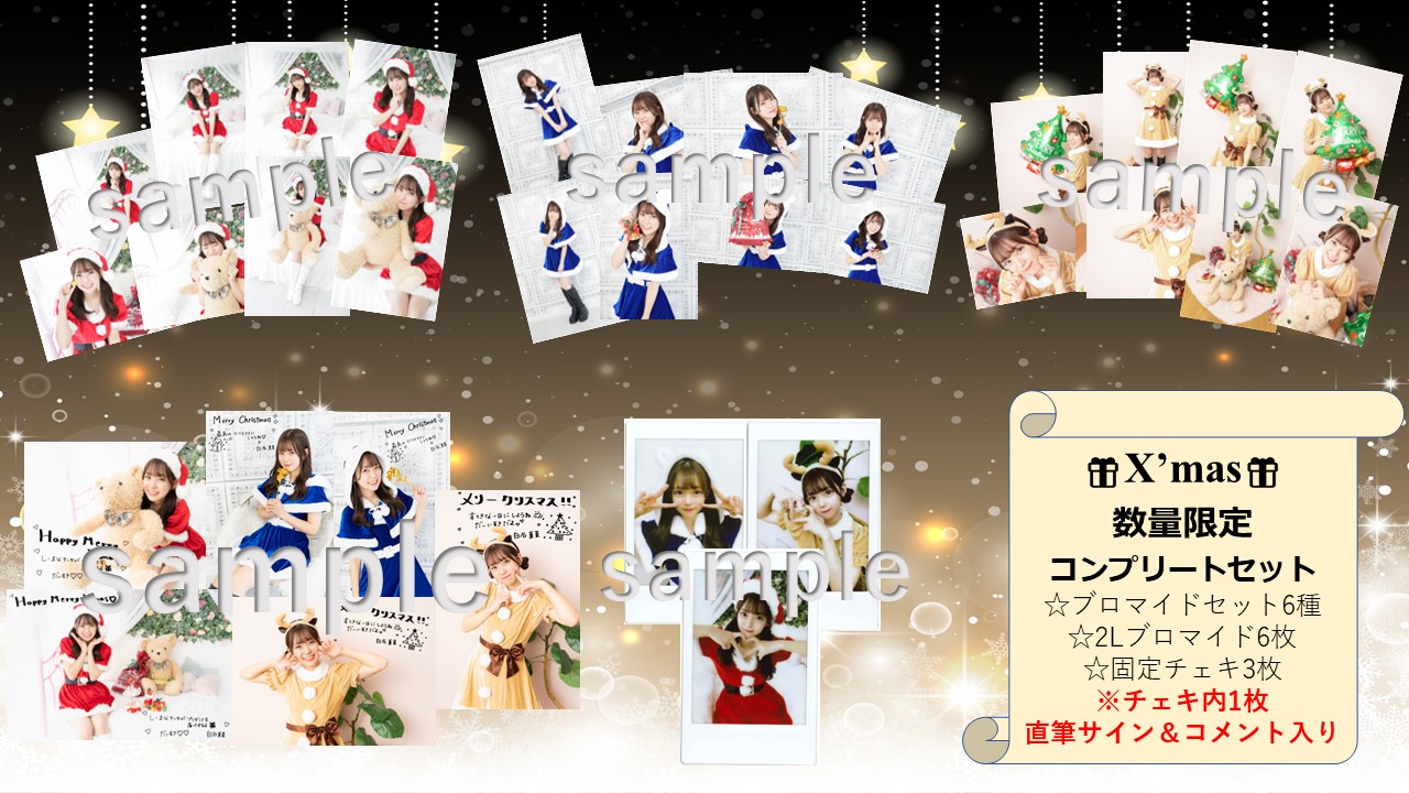 サンタやトナカイの衣装に身を包んだ白石真菜のブロマイドやチェキをぜひこの機会にGETしてください!